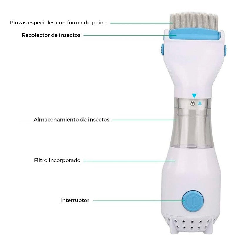 Tecnología avanzada que aspira y elimina piojos y liendres al instante.