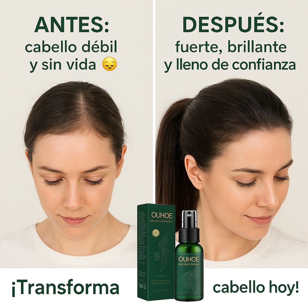 “¿Te gustaría un Antes y Después como este? ¡Prueba OUHOE hoy y transforma tu cabello!”