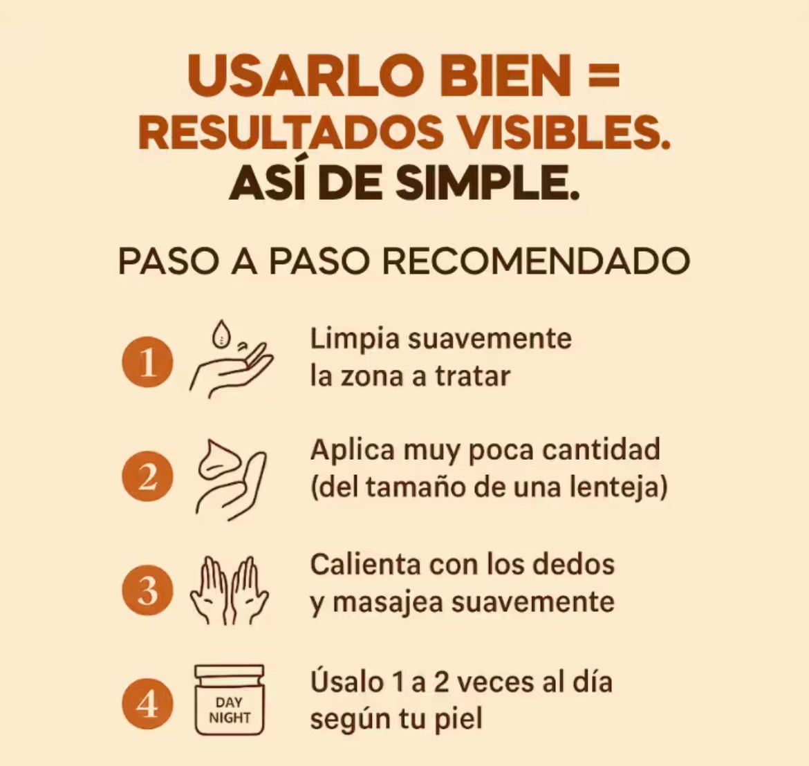 La mayoría nota cambios entre 3 y 7 dias. Con uso constante , mejora textura, tono y marcas